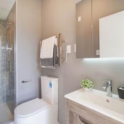 The open-plan kitchen features space for a double-door fridge, while the family room seamlessly connects to the dining area, offering a great view of the sun-soaked backyard. Upstairs, three generous bedrooms and a family bathroom await, along with a master suite that enjoys peaceful street views.