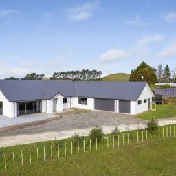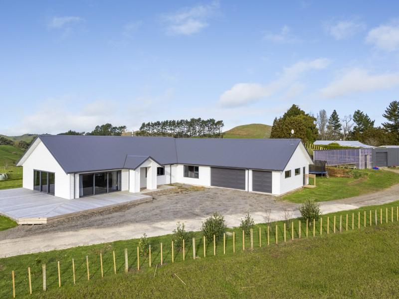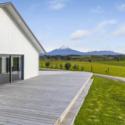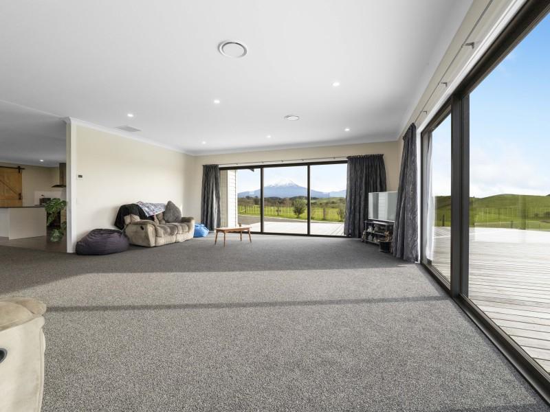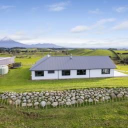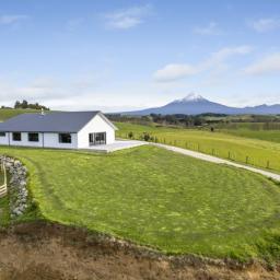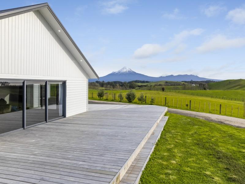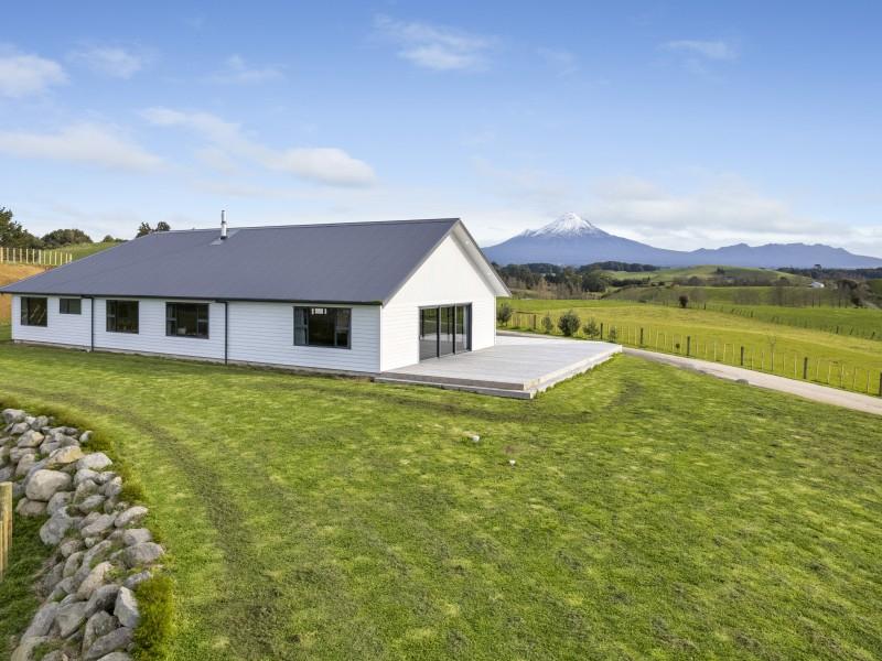Nestled at the top of a gently winding drive, this newly completed home commands a stunning position high above surrounding farmland, offering views of both rolling countryside and Mount Taranaki beyond.