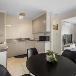 A neutral decor prevails throughout with the light and spacious plushily carpeted open plan lounge fitted with a heat pump for a warm and cosy winter ambiance. Alongside this, the conventional dine-in kitchen is amply proportioned and anchored by practical tiled floor, lots of overhead and underbench cabinetry - with overall scope here to renovate and update if desired. The sizable double bedroom comprises of a built-in wardrobe, and the combination bathroom integrates a laundry nook and shower over the bathtub. The unit also comes with one onsite carpark.
