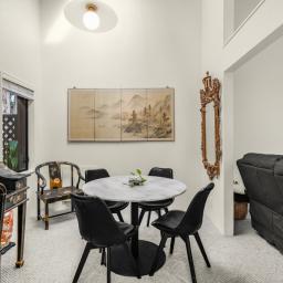 From the moment you enter, you'll feel the warmth and flow of this thoughtfully designed home. The open-plan dining, kitchen, and lounge form the vibrant hub of everyday living, where sunlight streams in and the connection to the outdoors is seamless. Ranchslider doors open directly out to a charming garden oasis, framed by mature trees. The garden is the ideal spot for BBQs, evening drinks, or simply unwinding after a busy day.