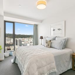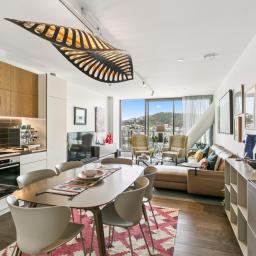 Victoria Lane in the hub of the CBD, has unobstructed views to Sky Stadium, around the harbour to Mt Victoria and South to the Berhampore hills. Enjoy the sound of the city or exclude the noise with floor to ceiling double glazed windows and balcony door.