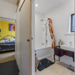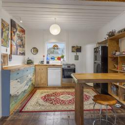 This character-filled building has stood the test of time, recently checked and found sound, with thoughtful upgrades adding to its appeal. Inside, you'll find multiple living areas that flow with light and colour, two kitchens and two bathrooms, plus a street-front shop with two rooms — ideal for showcasing work, hosting clients, or renting out for extra income. Every corner has personality, from the bold murals to the distinctive finishes, making it a place that truly sparks ideas. Garaging, storage, and parking are located at the rear, with right of way access on the title.