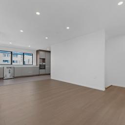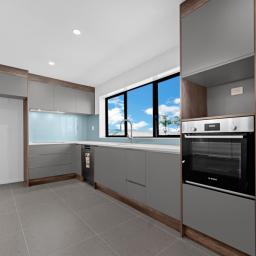 The sleek, modern kitchen features premium appliances including an electric cooktop, wall oven, and dishwasher. Seamlessly flowing into the open-plan dining and lounge areas, this central hub is ideal for everyday living and entertaining.