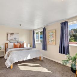 - Small walk facilitates the sought-after north-facing hillside position with great views over Lyall Bay