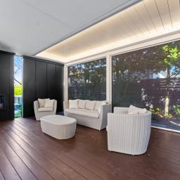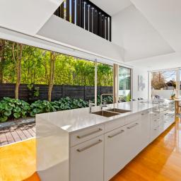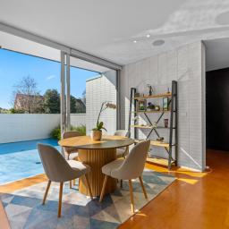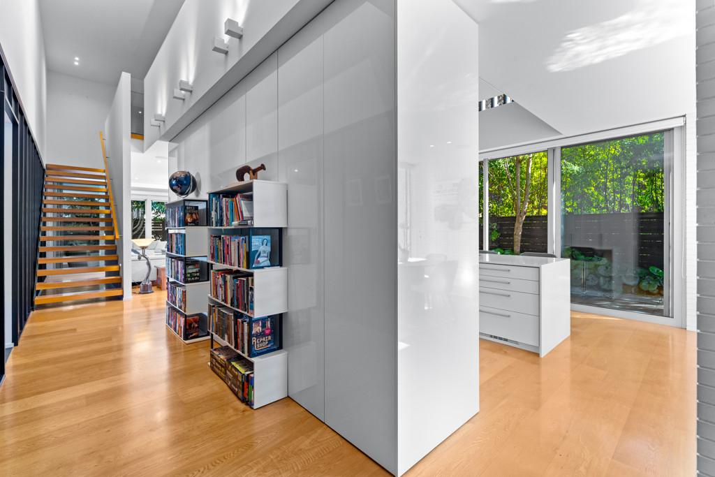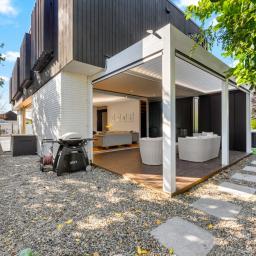 An award-winning residence showcasing the innovative architecture of David Ponting, this striking black and white home is truly one-of-a-kind. Designed to maximise natural light and its connection to a lush northern garden, the home balances openness with privacy, creating an exceptional retreat.