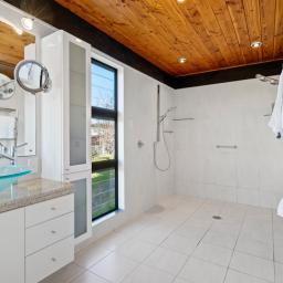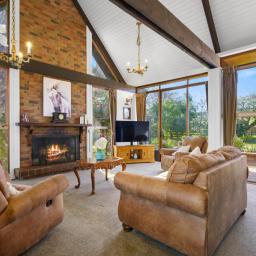 The north-facing cedar home delivers space, comfort and warmth. The master suite opens to a sunny, private patio and includes a walk-in wardrobe and ensuite. Bathrooms are well appointed, including a spa bath. Three further double bedrooms provide excellent storage. Two generous living areas include a sunken lounge overlooking the garden.