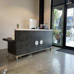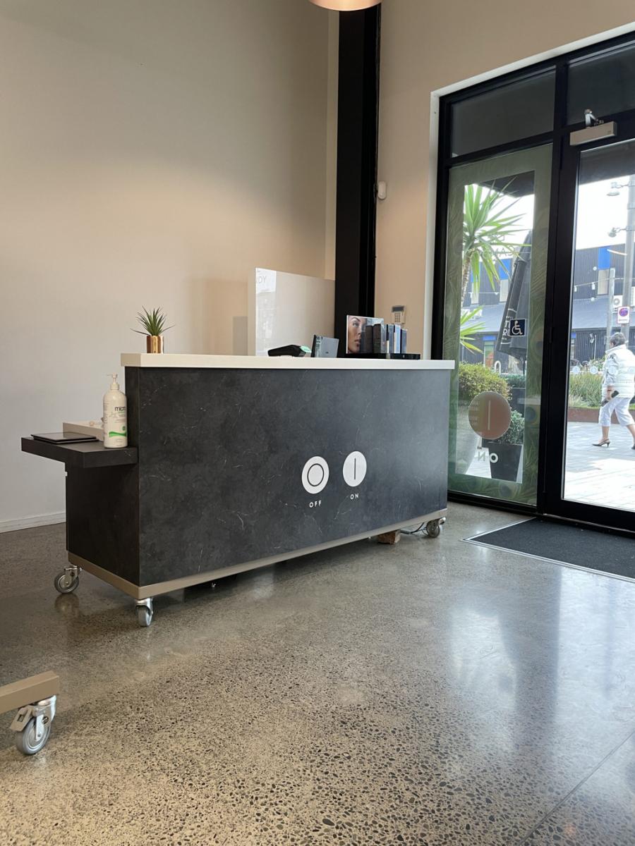 The space features a welcoming reception area and an open-plan workspace at the front, complemented by four private, well-lit treatment rooms at the rear, all with air conditioning.