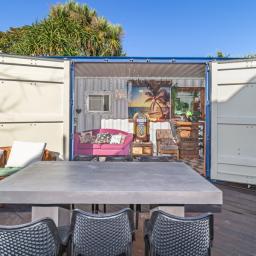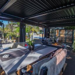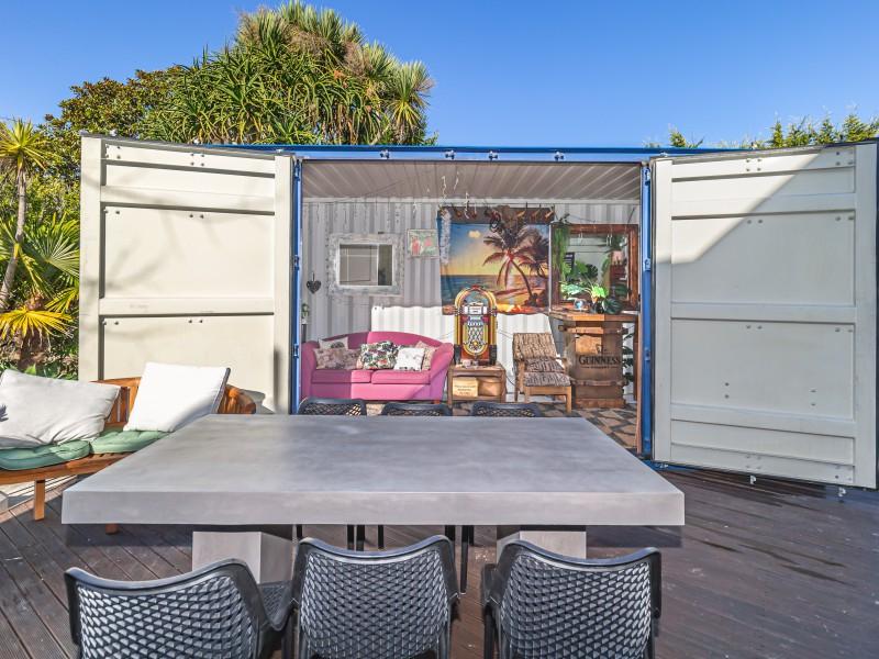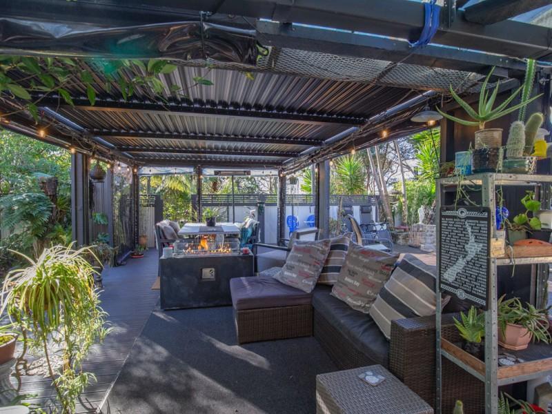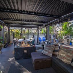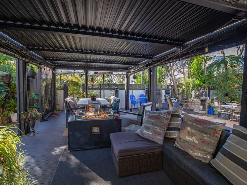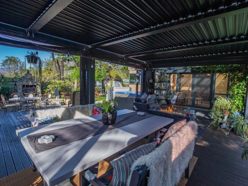 Designed for effortless entertaining, the home's outdoor spaces are truly impressive. Expansive concrete areas flow to a custom container shed/bar area, while the elevated deck off the conservatory is fitted with a louvered roof and all weather blinds, ensuring gatherings can be enjoyed year round. A wood fired pizza oven and outdoor fireplace add an inviting touch of European charm, making evenings here unforgettable.
