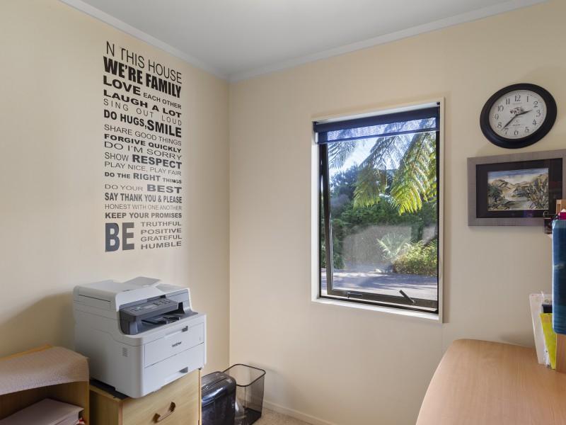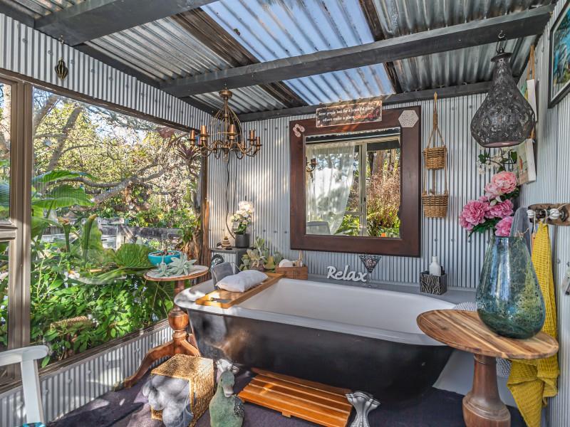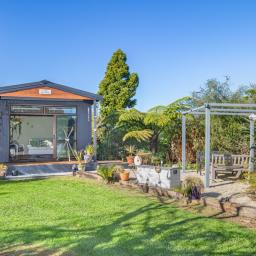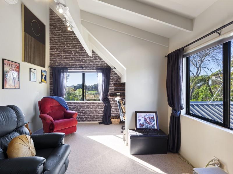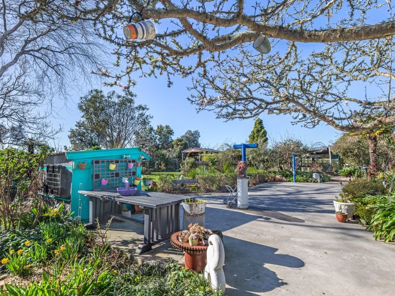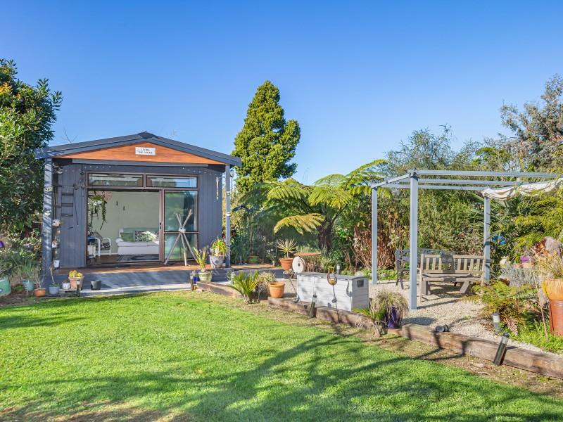 The landscaped grounds are a living masterpiece, abundant with New Zealand natives that attract a chorus of birdlife. A serene pond full of frogs, complete with its own island and resident ducks, forms the centrepiece of the garden, while an established orchard and covered berry enclosure provide both beauty and bounty. For those seeking creativity, an art studio nestled among the gardens offers an inspiring retreat, powered by its own generator for complete independence.