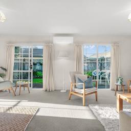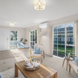 All three bedrooms enjoy the morning sun and feature built-in wardrobes for convenience. The living room is complemented by a heat pump for year-round comfort, with easy access to a private, easy-care garden. The kitchen and dining area are west-facing, perfect for soaking up the afternoon sun.