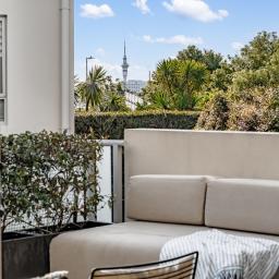 • Spacious middle-level entertaining deck opening directly from the main living space with Sky Tower views