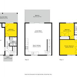 • Top level: Two well-appointed bedrooms and a modern bathroom