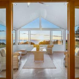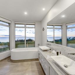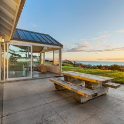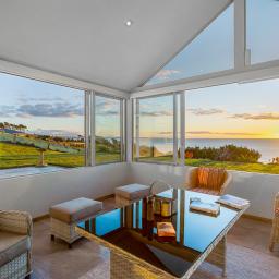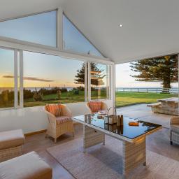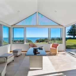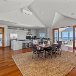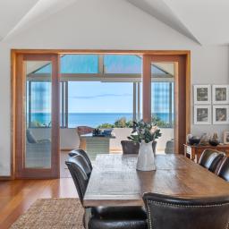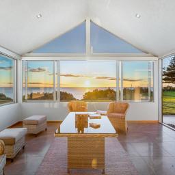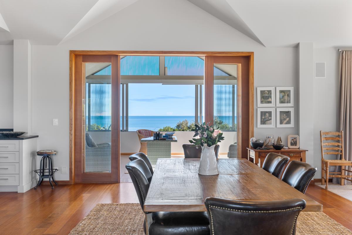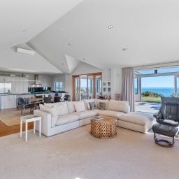 Step inside and experience an atmosphere that's nothing short of extraordinary. High raking ceilings, bespoke rosewood timber doors, impeccable finishes, and expansive glass walls frame sweeping views of the water and the majestic silhouette of Mount Taranaki. By day, sunlight shimmers across the ocean and fills the home with warmth. By evening, you are front row to sunsets so breathtaking they feel like a private performance created just for you.