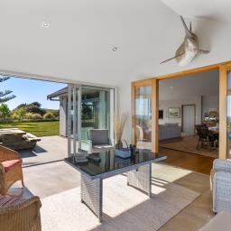 Commanding an unrivalled position on the North Taranaki Coast, this magnificent Wai-iti homestead is the very definition of refined seaside glamour. Built in 2013, a home of grand scale and exquisite design, where every detail has been elevated to perfection and every room showcases either (or both) the ocean, the mountain, or the sweeping rural landscape beyond.