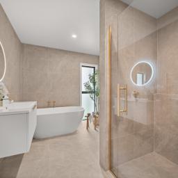 - A sleek tiled bathroom with underfloor heating plus a second toilet