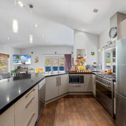 •The heart of the home is the open-plan kitchen, lounge, and dining area – where natural light floods the space and flows effortlessly onto decks on all sides, bringing in sunshine from morning to night.