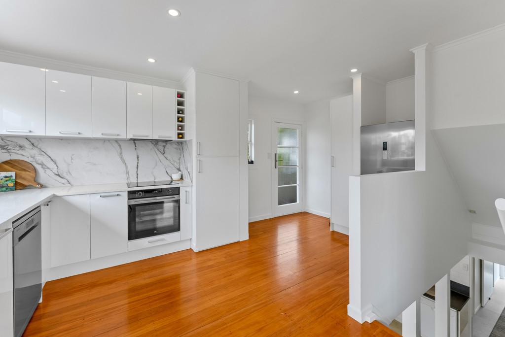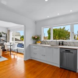 An adaptable residence offering flexibility for modern living. Securely set behind an electric gate on a fully fenced 930sqm (MOL) section, it provides two generous bedrooms upstairs complemented by a third bedroom and a semi self-contained area downstairs. An ideal layout for extended family living or independent teens. A modern kitchen with an open plan lounge connects seamlessly to the sun-soaked deck, creating the perfect backdrop for summer barbecues, family gatherings, and effortless entertaining