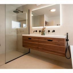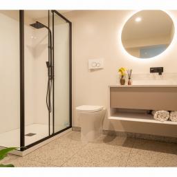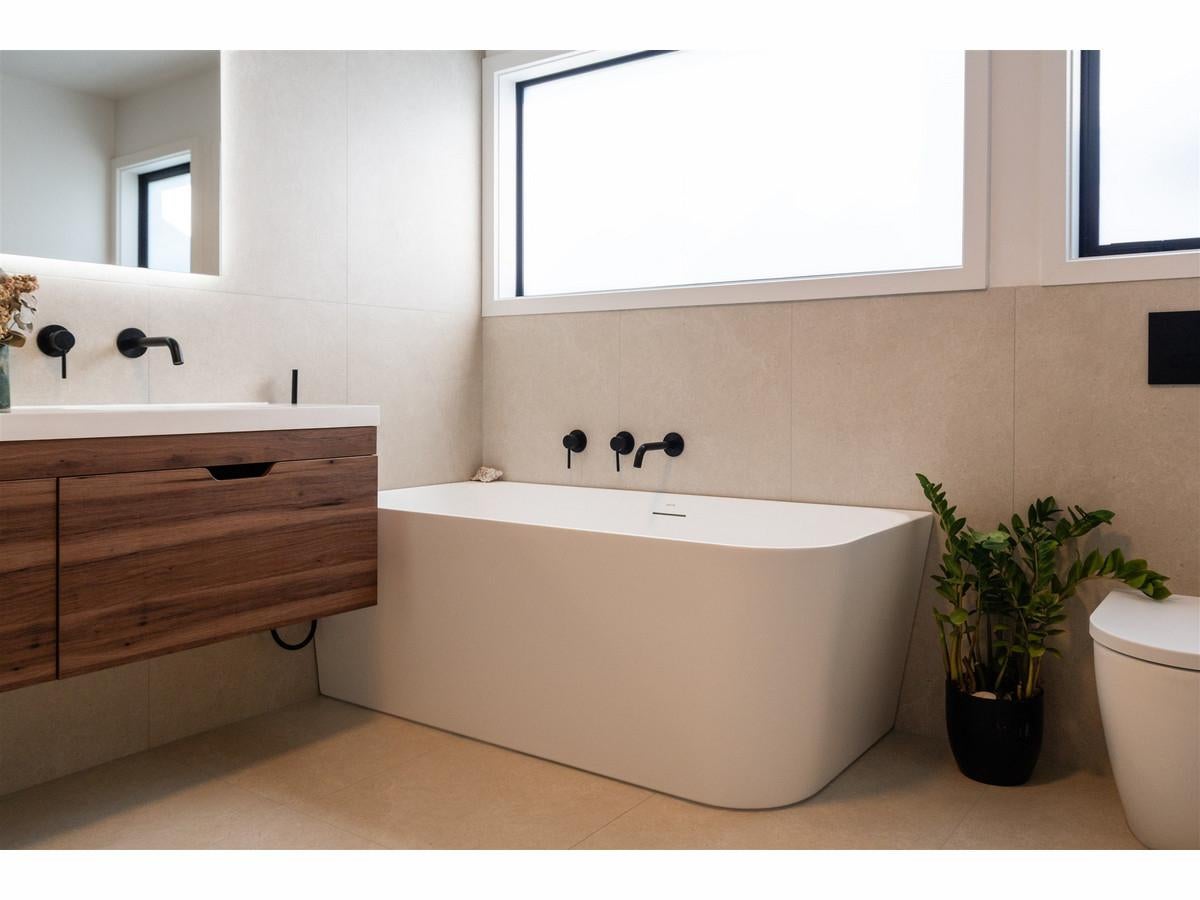 • Two luxurious bathrooms, including one combined with a functional laundry space