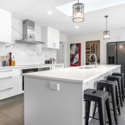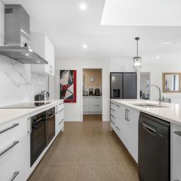 DYNAMIC LAYOUT: Featuring four generous bedrooms and two well-equipped bathrooms, it's the perfect balance of space and privacy for families. Two inviting lounges give you options for entertaining, relaxing, coming together, or creating a separate retreat for the kids. When you walk in the door, you are welcomed by a beautiful marble tiled feature wall, which accents into the kitchen space.