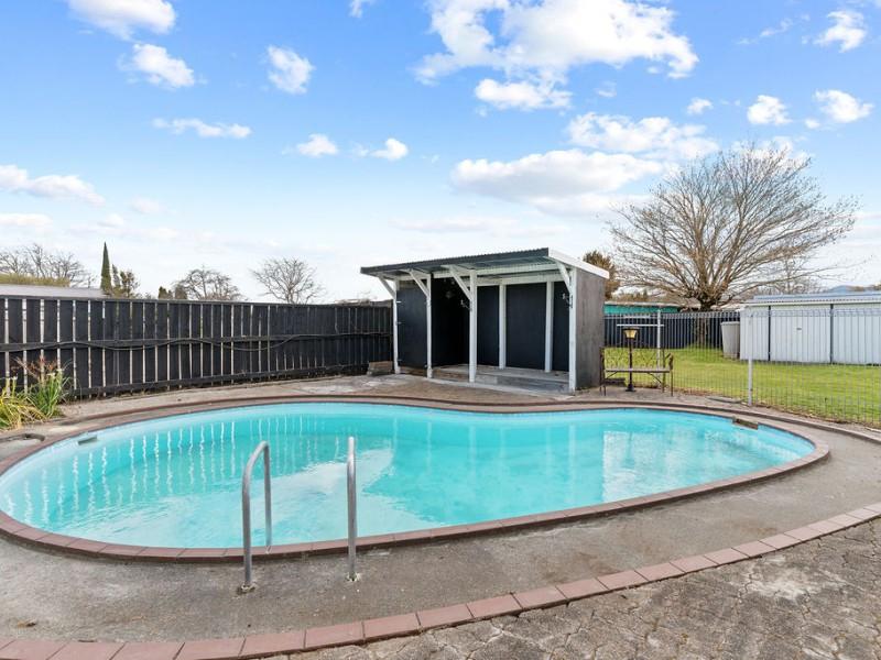 With three double bedrooms, HRV, log burner, heat pump, and solar for hot water and power, it's designed for year-round ease. The dining room opens to a sunny sunroom, while the separate dining flows seamlessly to the kitchen - ideal for family living. There are 2 toilets and a good-sized separate laundry. Step outside to enjoy summer days by the inground pool, potter in the sheds, or tend to your own vegetable garden and glass house a really gem of a backyard. A double garage and a private backyard complete this well-rounded property.