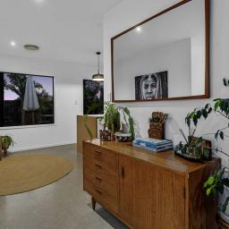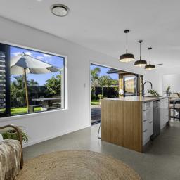 The grounds are beautifully established, with tropical-style landscaping with bore and automated irrigation, a fully fenced backyard with room for children and pets, and a separate vegetable garden with greenhouse and garden shed.