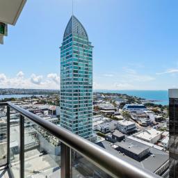 Elegantly presented and being sold with a glittering view over the sea and lake, we present this one bedroom apartment with car park in the popular Spencer on Byron.