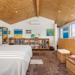 Located in the seaside village of Whiritoa on the stunning Coromandel Peninsula, this modern coastal home sits just across the road from the northern beach and safe swimming lagoon.