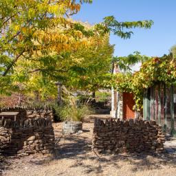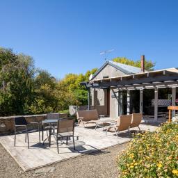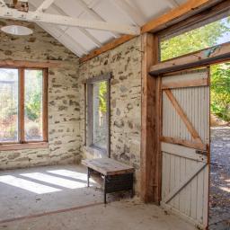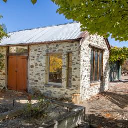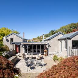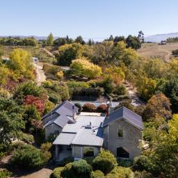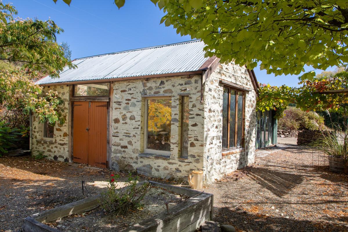 The landscaped grounds include drystone and Schist walls, an Italian-inspired piazza, a stone hut and potential for a gallery or studio. A double carport with a fully insulated sleepout offers space for guests or a home office.