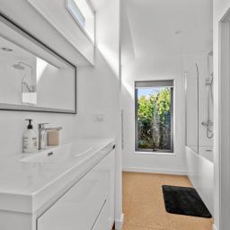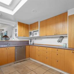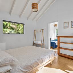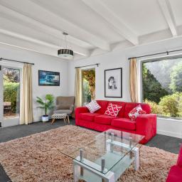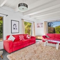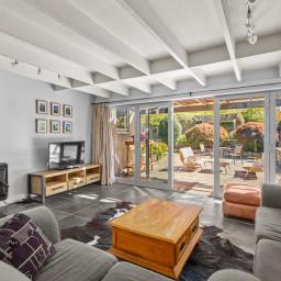 Inside, the three bedroom home features an open-plan living and dining area, a logburner, two heat pumps, full double glazing, and a garden outlook. A separate downstairs lounge provides extra living space.