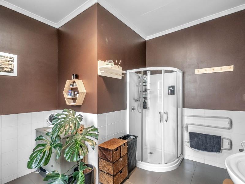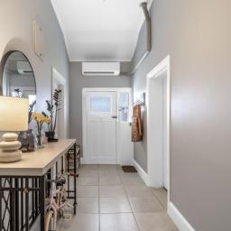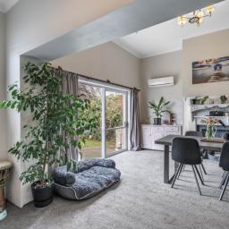 Accommodation includes three generous double bedrooms, each light-filled and inviting, with the master bathed in sunshine. The stylish bathroom combines space and sophistication, featuring a full suite, striking LED feature window, and underfloor heating for everyday luxury. Practical extras include a separate laundry, rewiring, insulated ceilings, partial double glazing, and three heat pumps ensuring year-round comfort.