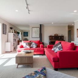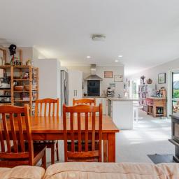 The home design is fantastic - the central kitchen (with Bosch appliances) has large living areas on each side, and sliding doors opening out to an expansive outdoor area that give incredible views across the ranges. The impressive 120sqm of decking has been cleverly designed with a large covered area for you to enjoy outdoor living through all seasons and houses a near new top quality Spa. Wood fires in both lounges and double glazing throughout keeps the home nice and warm, and showers never need to be short with 2 large 25,000 litre tanks on site.