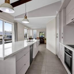 Upstairs you'll find a modern galley kitchen and open-plan living that flows to large windows and doors, capturing both natural light and beautiful elevated views. The living area opens to a deck, making it ideal for entertaining or simply relaxing while taking in the outlook.