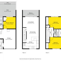 Spread across three levels and approximately 108m², the home features spacious open-plan living that flows to a sunny terrace, where you can unwind with an evening wine while watching the sun set over the water. The master suite comes complete with its own ensuite and private courtyard, while two additional double bedrooms and a second bathroom provide plenty of flexibility for family, guests, or a home office.