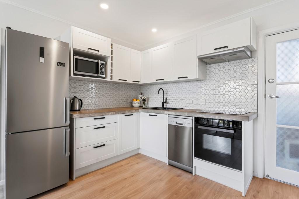 The open-plan living and kitchen area flows effortlessly to a spacious and fully fenced outdoor space offering room for children and pets to play.