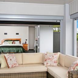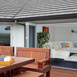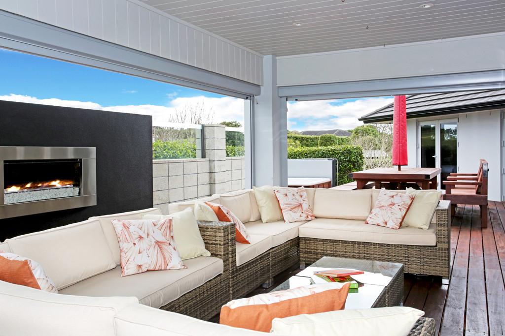 • The outdoor entertaining zone with gas fire is private and part of the deck can be sectioned off with its external screen system.