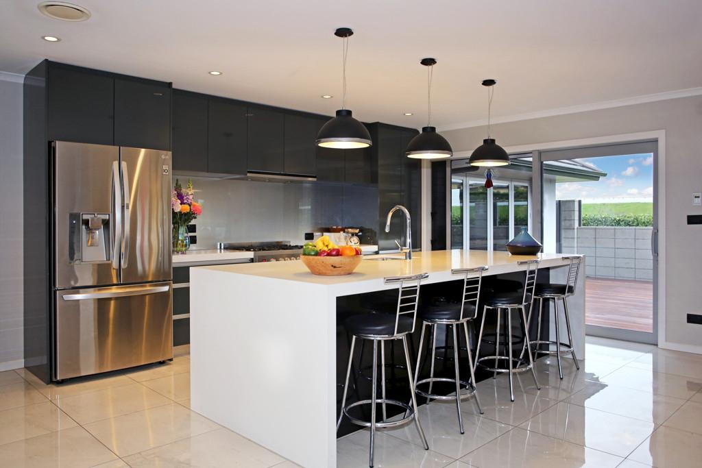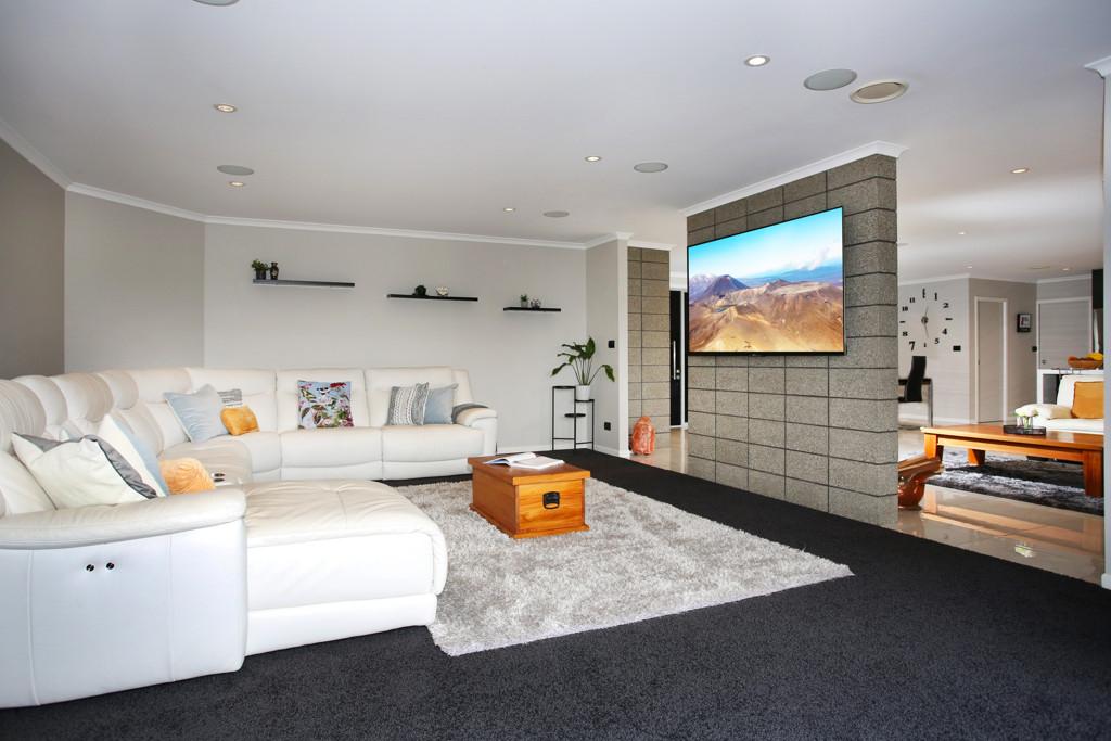 • The designer kitchen with scullery anchors the home, connecting to the dining and lounge with a wood burner. A second large lounge adds even more flexibility for family living.