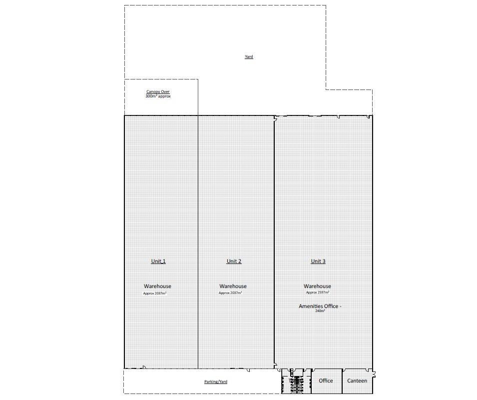 Drive thru office/warehouse of 2,037m2* with 7m* high roller doors and yard area options if required.