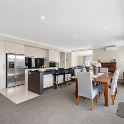 The light-filled open plan living is the hub of the home, featuring a designer kitchen with large walk-in pantry and seamless flow to dining and living zones. A separate lounge provides the perfect retreat, while the bonus office space caters to work-from-home needs.