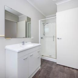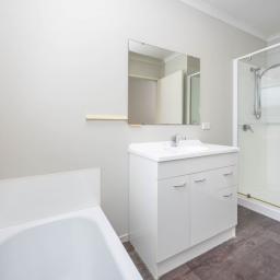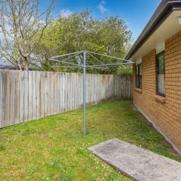 The unit has an open plan kitchen, lounge and dining area, which opens out onto a deck in the backyard, which is the largest section out of all the five units. Soak up the sun in this private, quiet sunny backyard and during the winter month's, keep warm and cozy with the heat pump and wall heater panel.