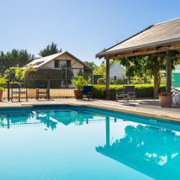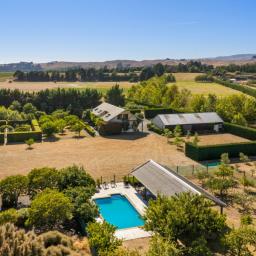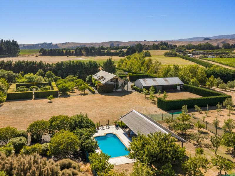Utilising a selection of native grasses, shrubs and trees, tastefully blended with exotic specimen and fruit trees, and working to a design by Robert Watson, Landfall Estate has been attractively planted to provide an aesthetic balance of productive areas, private spaces and room for recreation. The beautifully maintained hedged potager is a feature, as are the heated in-ground swimming pool complete with pool house, and a rill flowing to an ornamental lake, complete with a bridge to an island in the middle.