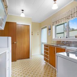 Walk in the sliding glass doors or take the ramp into a light and good size open lounge/ dining area with enough space to have a desk for those of you who want to work from home. A heat pump will assure you stay warm during the colder months. The kitchen is easily accessible off the dining area and there are two good size rooms downs the hallway with wall-heaters. The family bathroom has both a bath and a shower and there is also a separate toilet.