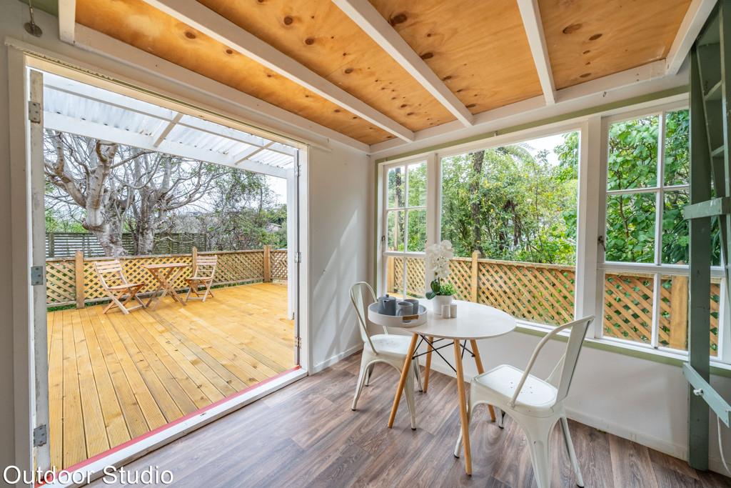 Step outside and you'll find an unexpected bonus - a versatile outdoor studio with bathroom, ideal as a home office, artist's retreat, or teen hangout. This further extends out to a generous sized deck and a very cool, lovingly built pizza oven. Completed with off-street parking, a playhouse, and luscious grounds, this home is as practical as it is peaceful.