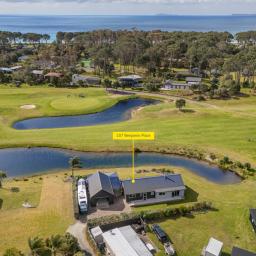 Slow down, switch off and soak up the bliss of golf front living. Enjoy uninterrupted north facing views over the lake to the 8th Fairway of the Matarangi Dunes golf course from this gorgeous sanctuary. The house, with its high ceilings, timber blonded walls, 3 bedrooms, 2 bathrooms and a wood burning fireplace is simply gorgeous. Complimenting the stunning house, the spacious garage with kitchenette, extra bedroom with bathroom and mezzanine floor offers endless options for friends and family. Come and relax on the covered deck area with a refreshing drink and watch the golfers pass by. Summer holidays are fast approaching and this is your chance to secure your own slice of paradise and start building unforgettable family memories. Contact your Matarangi based salesperson Louise Bradley on 0273481700 and make a time to view.