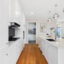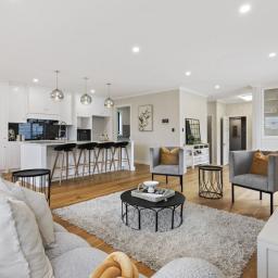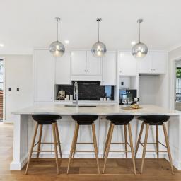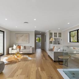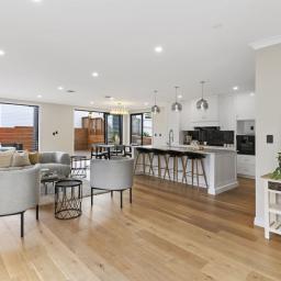 The living domains unfold with generosity, framed by soaring ceilings and walls of glass that draw the outdoors in. The kitchen-open, refined, and supported by a full scullery-serves both the effortless rhythms of daily life and the gentle art of entertaining. Beyond, a wide deck and secure garden form a private sanctuary where children can play, pets roam freely, and friends gather beneath long summer skies. A guest suite with walk-in wardrobe and ensuite, an internal double garage, separate laundry, and powder room complete the ground level with considered ease.