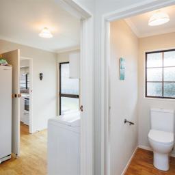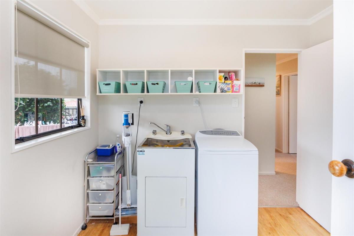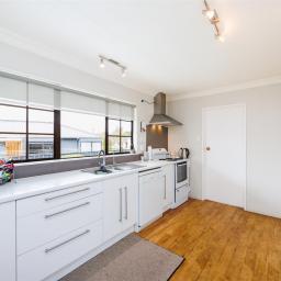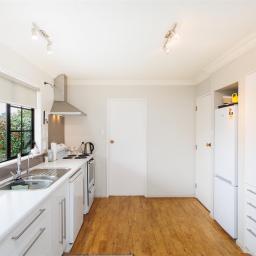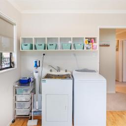 Brilliant bench and pantry space in the white-sleek modern kitchen which is adjacent to the spacious separate laundry area that has room for freezer space too.
