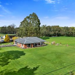 The spacious, permanent material 230 m² family home is perfectly positioned on sweeping lawns and consists of a practical, country-style kitchen with ample bench space, a breakfast bar, and storage, which in turn overlooks a light and bright family/dining space and leads into a large, separate formal lounge perfect for the growing family.