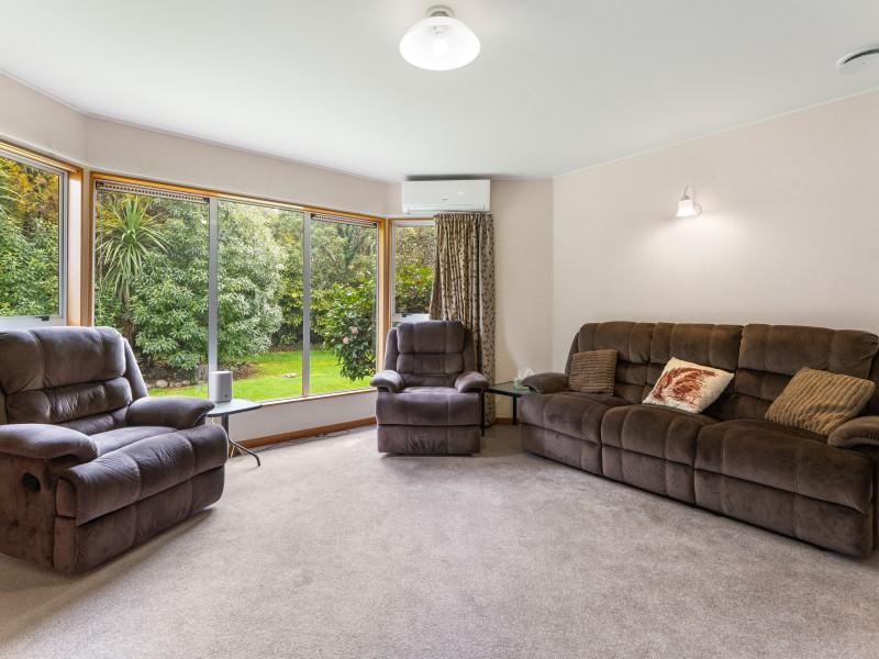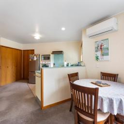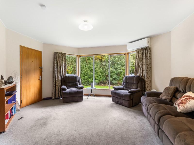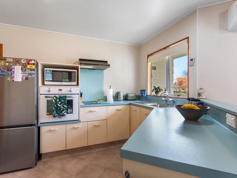 Designed for comfort and ease, it features two double bedrooms, a light-filled open plan kitchen and dining area that interconnects seamlessly with the lounge, and garden outlooks that create a peaceful setting. Warm and inviting with two heat pumps, modern decor, and quality carpets throughout. The spacious bathroom includes a convenient wet-floor shower.