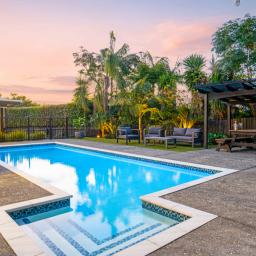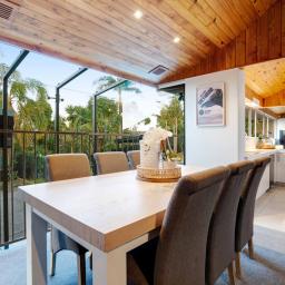 At the heart of the home, the renovated kitchen does more than just look sharp. It's where mornings begin with the kids lined up at the breakfast bar, and the weekends wind down with friends, cocktails, and food - as the doors glide open to the garden and swimming pool area.