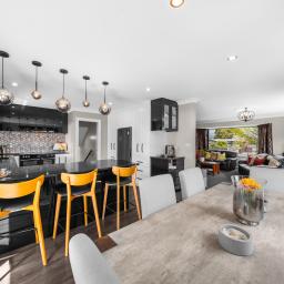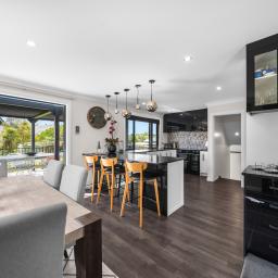 Designed with easy living in mind, the home's sun-filled open plan kitchen, dining and living area forms the social heart of the home, with seamless flow to expansive decking and multiple outdoor entertaining spaces — perfect for long lunches, family gatherings and relaxed summer evenings.
