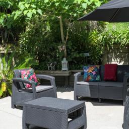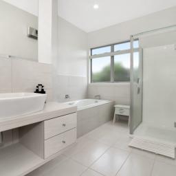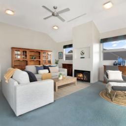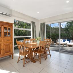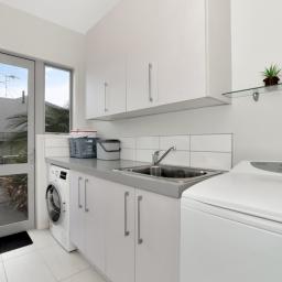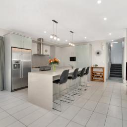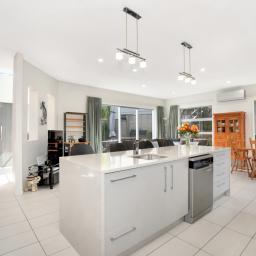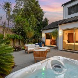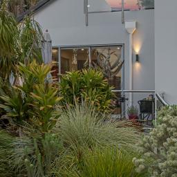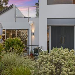 The kitchen impresses with a gas hob, quality appliances, and excellent storage. Outdoors, you'll find a fully fenced section with glass and stainless ballustrades, a private spa pool, citrus-filled garden, and sunny courtyards ideal for entertaining.